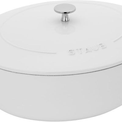 STAUB Specialty Shaped Cast Iron 6.25-qt Shallow Oval Dutch Oven-White