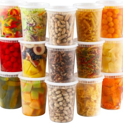 AOZITA 20 Sets 32 oz Plastic Deli Food Containers With Lids, Airtight Food Storage Containers, Freezer/Dishwasher/Microwave Safe, Soup Containers For Takeout Meal Prep Storage