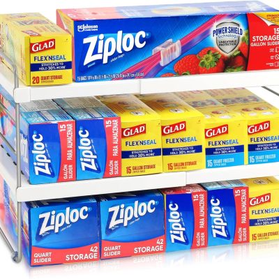 JUPELI Foil and Plastic Wrap Organizer, Expandable Kitchen Pantry Storage, Height Adjustable Cabinet Rack for Kitchen Organization, Aluminum Foil -3 Tier 9.8″ to 15.6″L
