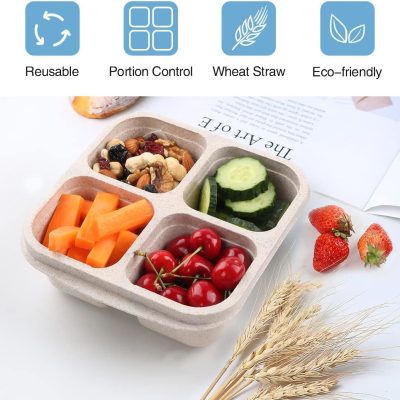 PUiKUS 4 Pack Snack Containers, 4 Compartments Bento Snack Box, Reusable Meal Prep Lunch Containers for Kids Adults, Divided Food Storage Containers for School Work Travel