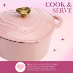 Paris Hilton Enameled Cast Iron Dutch Oven Heart-Shaped Pot with Lid, Dual Handles, Works on All Stovetops, Oven Safe to 500°F, 2-Quart, Pink